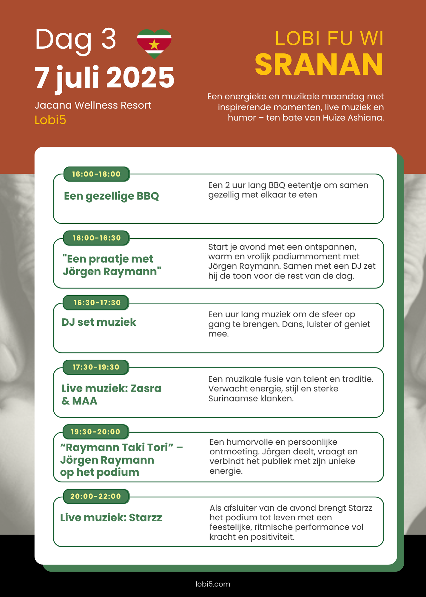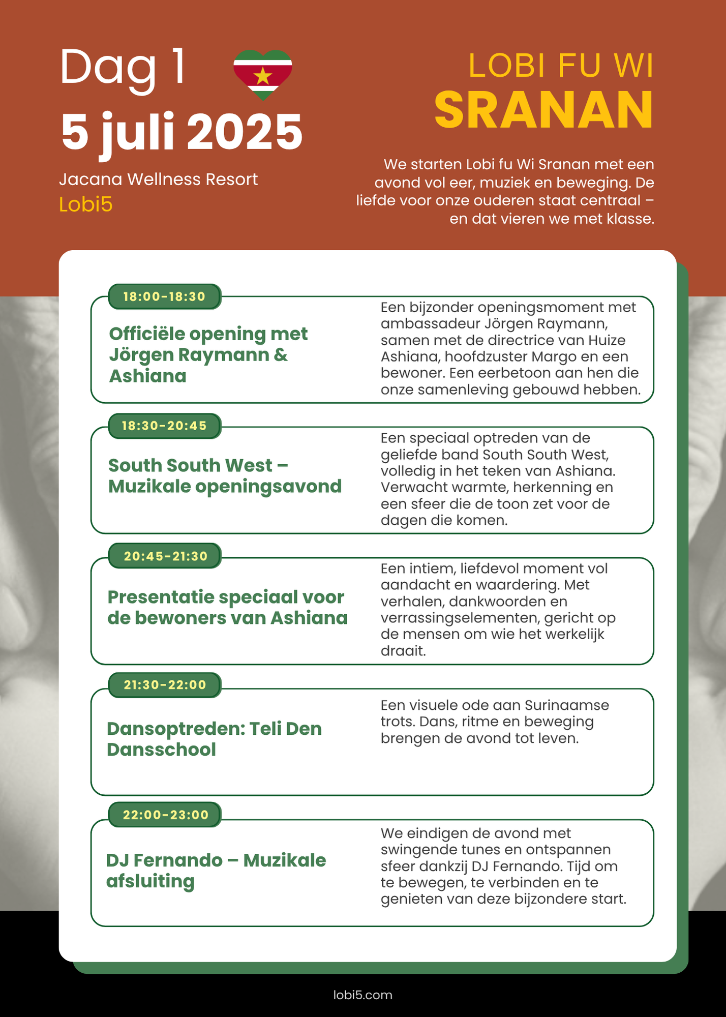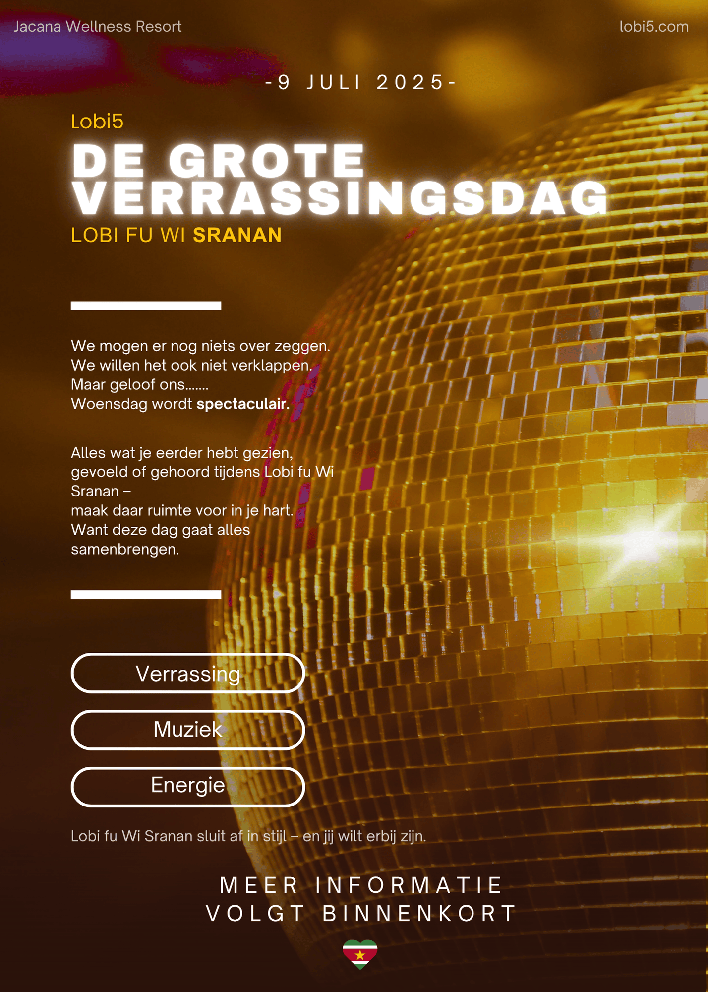 Van 5 t/m 9 juli 2025 organiseren we iets dat Suriname nog niet eerder heeft gezien: Lobi fu Wi Sranan – 5 Dagen van Lobi.